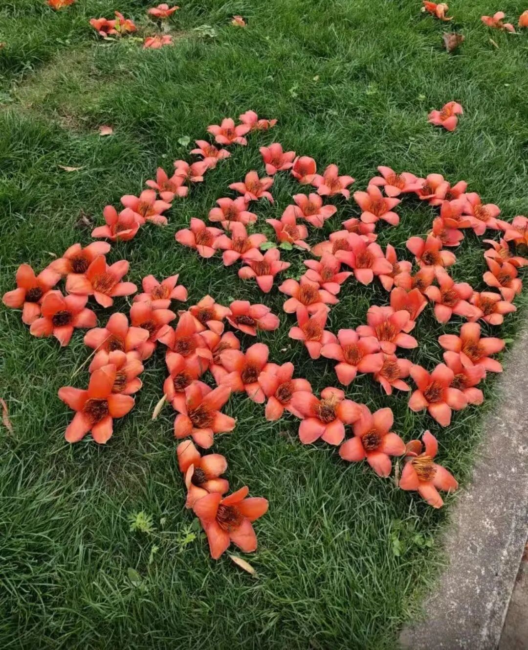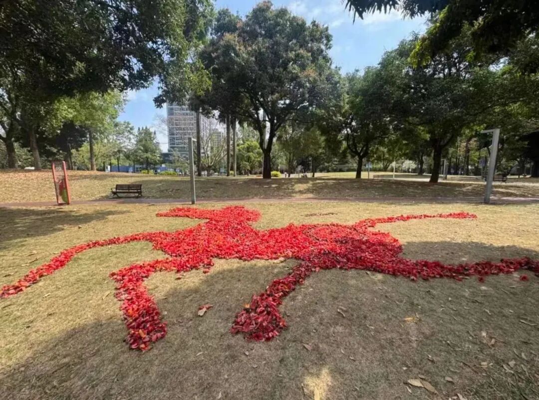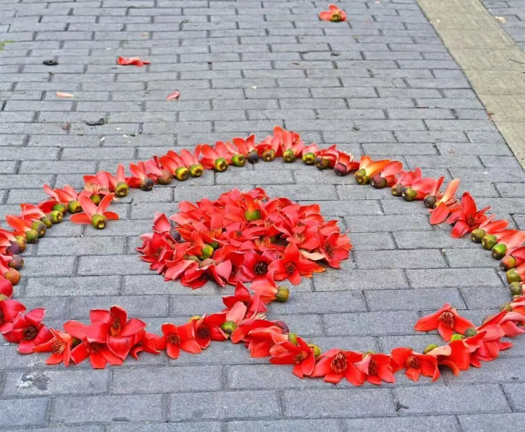 有人用木棉花摆出了奔腾的骏马