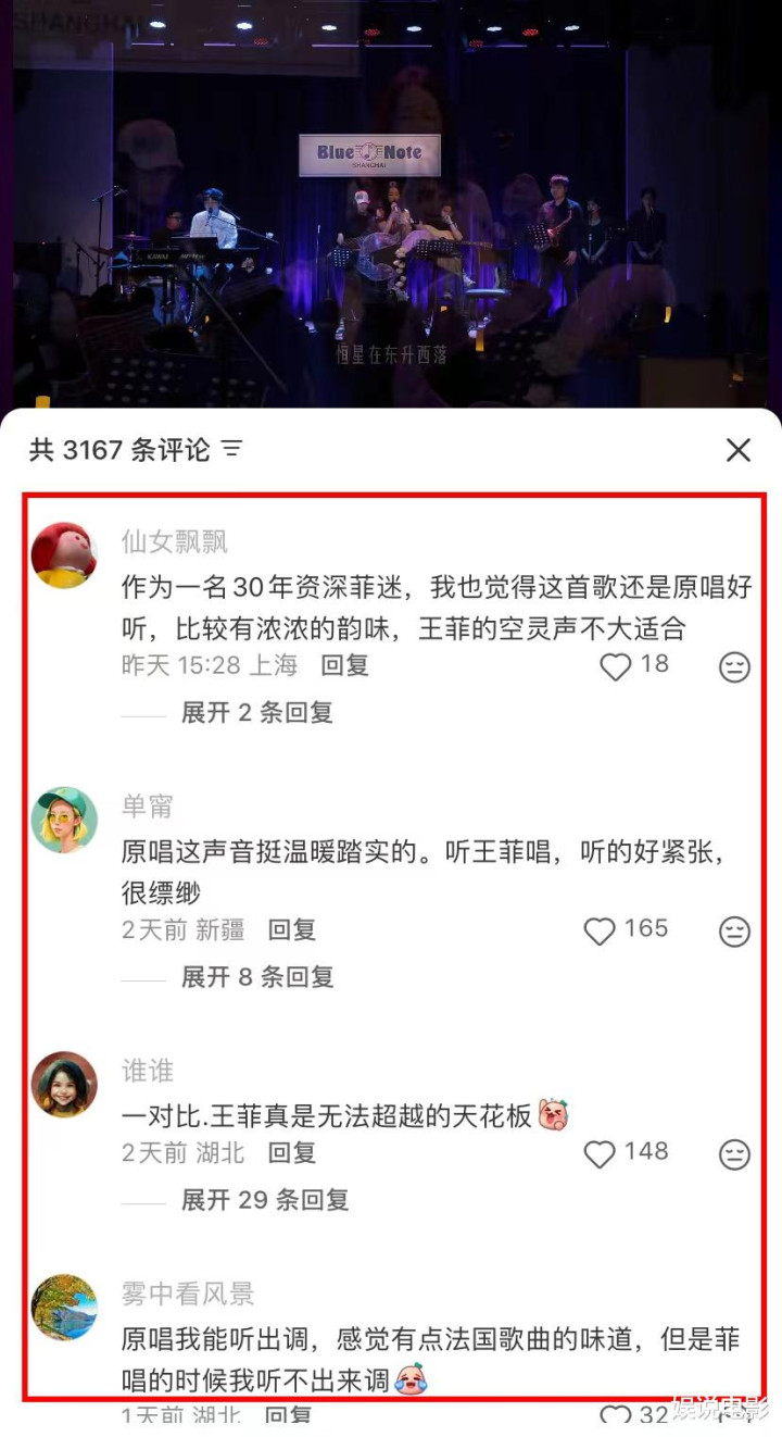 王菲当晚的演唱被部分观众认为“气息不稳、咬字含糊、高音乏力”,与她早年《传奇》《相约九八》中的空灵嗓音形成鲜明对比。